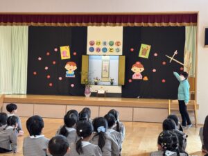 12月生まれのおともだち みんな上手に発表できました。 すずらん1組 先生の出し物は「どっち??どっちでしょう???」さてプレゼントの中身は何が入ってたでしょうか? 12月生まれのおともだち おたんじょうび