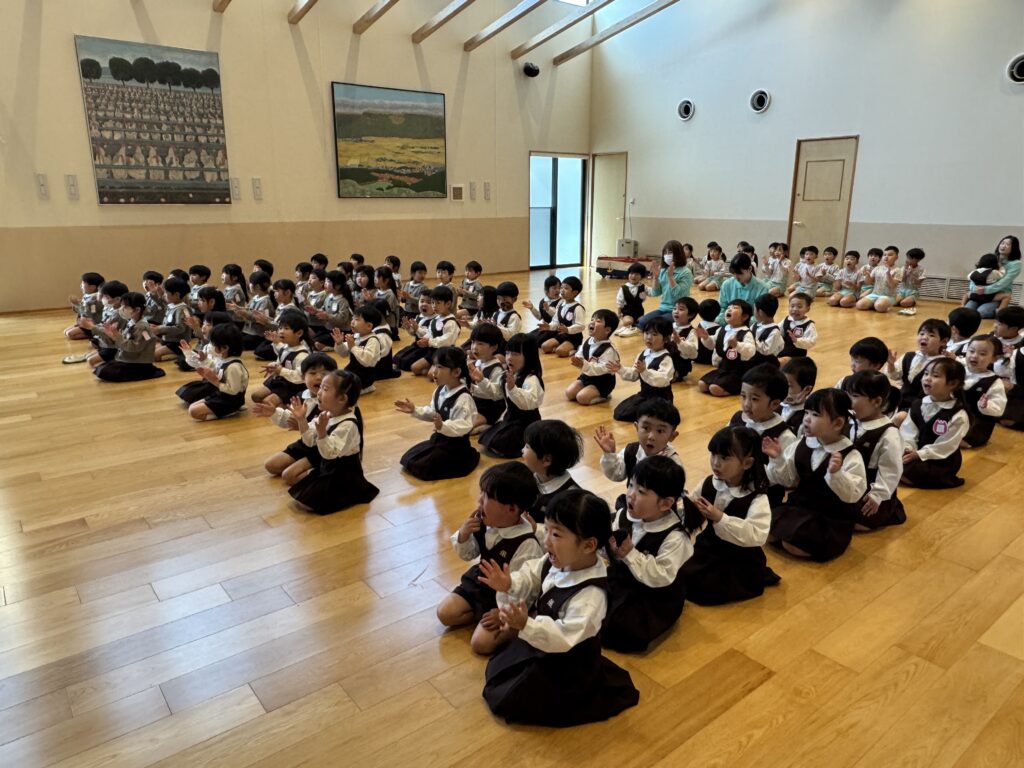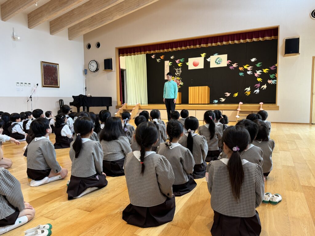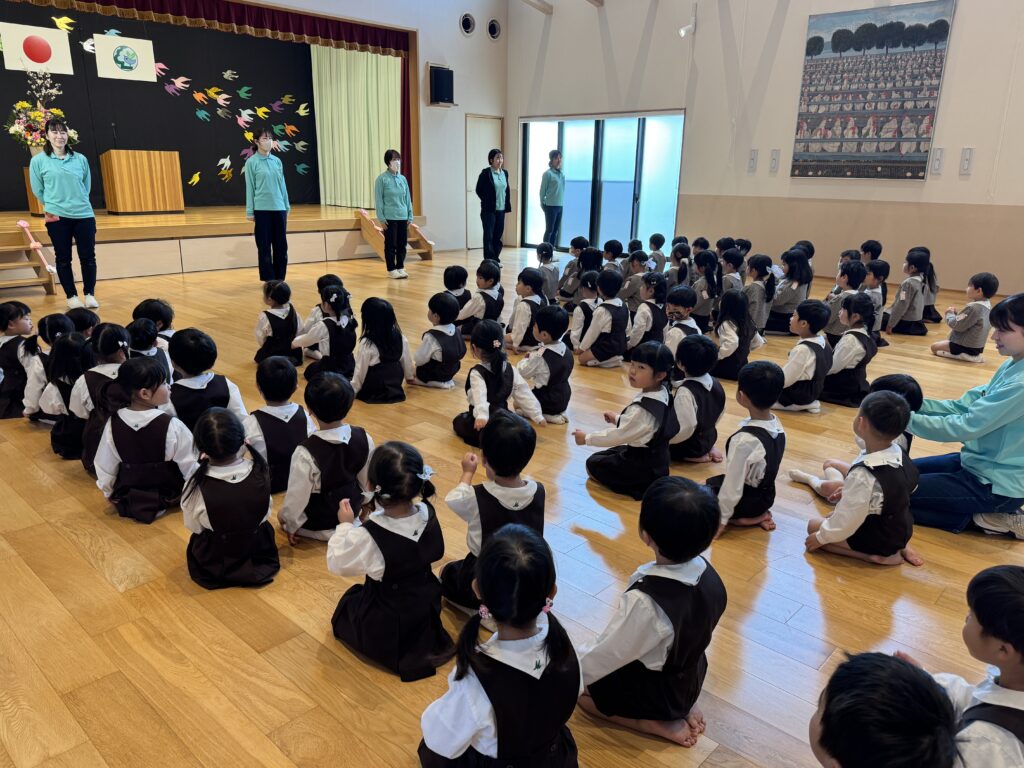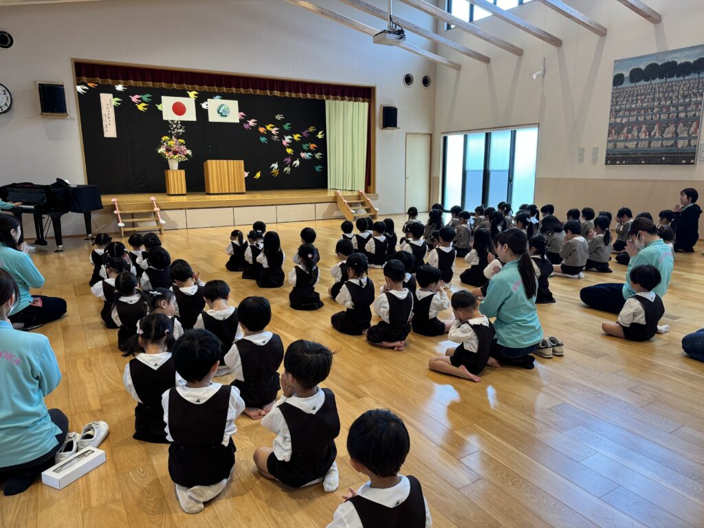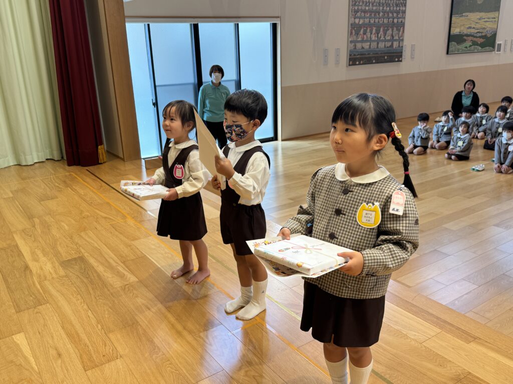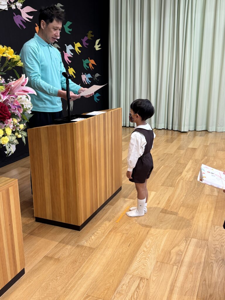 まずはこの1年間 お休みをしなかった「皆勤賞」のお友だちを表彰します。